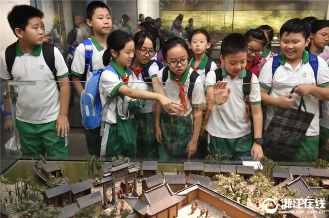 杭州博物館還原的古代市井生活引起了學(xué)生興趣。