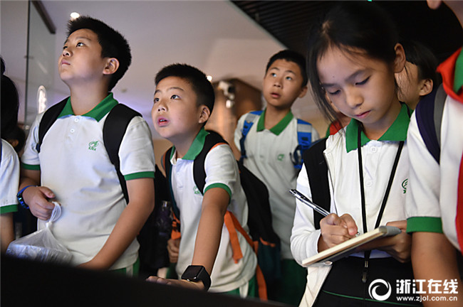 2018年10月9日是杭州市學(xué)軍小學(xué)秋游的日子,畢業(yè)班的學(xué)生在出發(fā)前做足了功課,人人帶著課題去學(xué)習(xí)杭州的歷史文化知識(shí),秋游成了走出校門的探索之旅。(浙江在線記者 潘海松 攝)