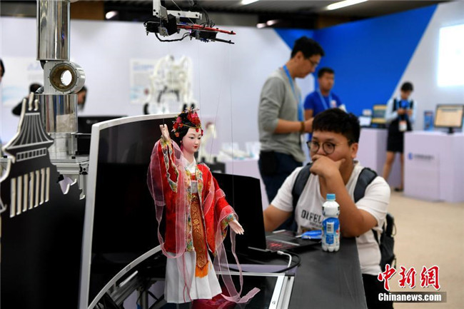 10月13日,第四屆中國“互聯網+”大學生創(chuàng)新創(chuàng)業(yè)大賽總決賽在廈門大學舉行。無人機、自助售飯機、人偶互動、全息3D智能視頻、機器人輪椅、3D打印假肢手臂等大學生研發(fā)設計的產品亮相會場,以“90后”為主的創(chuàng)新創(chuàng)業(yè)生力軍已全面發(fā)力,釋放出“青年+創(chuàng)新創(chuàng)業(yè)”的無窮力量。圖為人偶交互機器人展示。中新社記者 王東明 攝