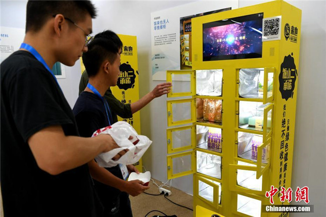 10月13日,第四屆中國“互聯網+”大學生創(chuàng)新創(chuàng)業(yè)大賽總決賽在廈門大學舉行。無人機、自助售飯機、人偶互動、全息3D智能視頻、機器人輪椅、3D打印假肢手臂等大學生研發(fā)設計的產品亮相會場,以“90后”為主的創(chuàng)新創(chuàng)業(yè)生力軍已全面發(fā)力,釋放出“青年+創(chuàng)新創(chuàng)業(yè)”的無窮力量。圖為無人售飯機展示。中新社記者 王東明 攝