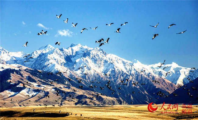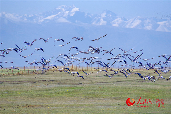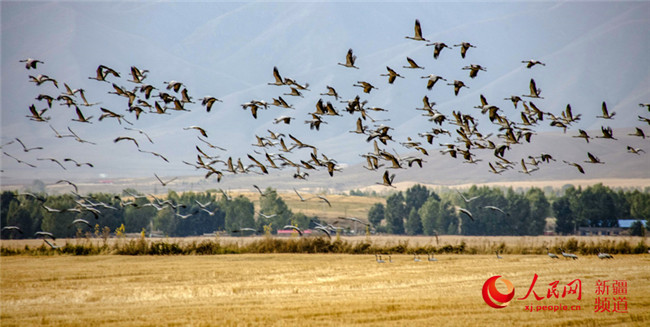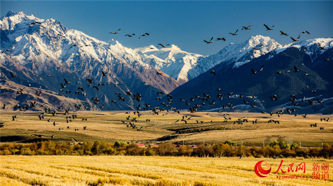 伊犁河谷獨特的河谷地形和豐富的伊犁河水系,使這里成為一塊豐饒的“濕島”,為各種鳥類提供了豐富的食物。而昭蘇縣作為鳥類遷徙的重要通道之一,每年秋天有近50萬只候鳥通過這里遷徙。(李文武 李忠銘)