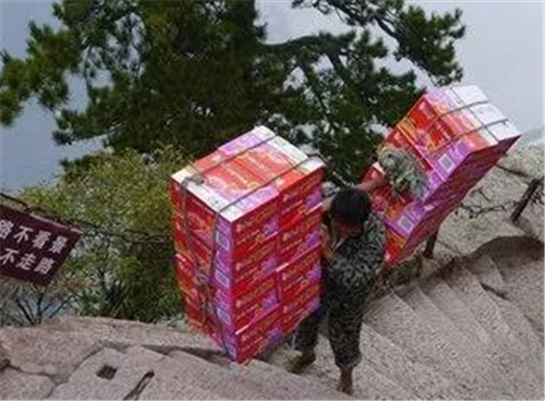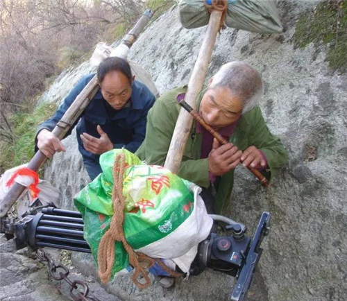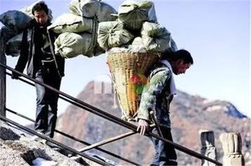 以前爬華山時,碰到的華山挑夫看上去大都三四十歲的樣子,也有年長的,這些人普遍是因為家庭困難,生活所迫,不得已用肩膀挑起了家里的生活重?fù)?dān)!