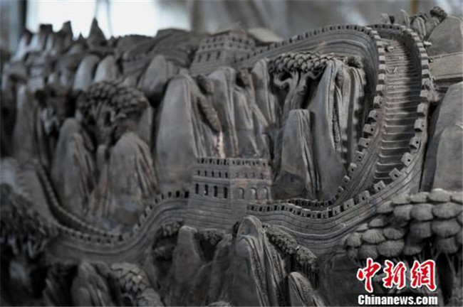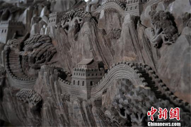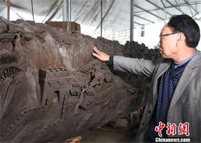 重慶市民耗時三個月在六米烏木上雕刻萬里長城