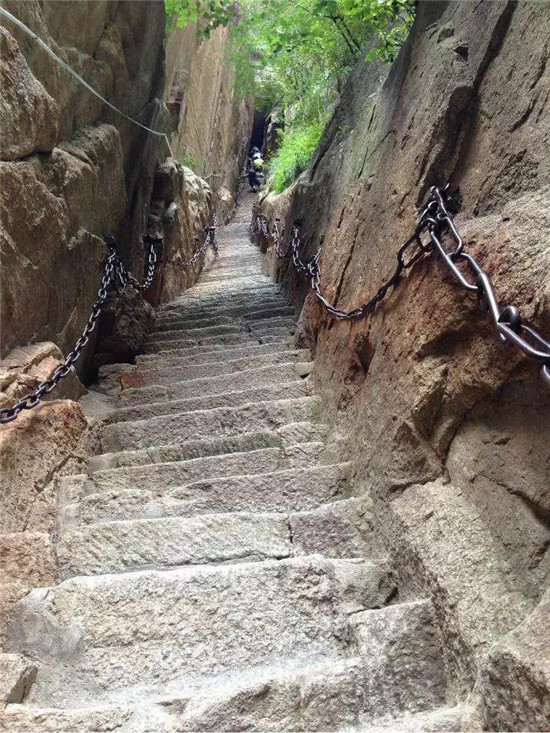一是直上云頭。如千尺幢、上天梯、否梯、百尺峽等,開鑿于石隙崖壁,直上直下,有聳入云天之勢;二是凌空載道。一邊臨壁,一邊凌空,奇絕險要。如南峰長空棧道、北峰至蒼龍嶺棧道;