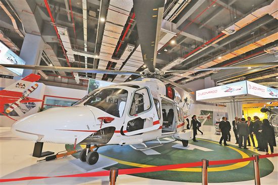 AW189型直升機(jī)是此次進(jìn)博會上單體價值最高的一個產(chǎn)品,價值2億元人民幣。本報記者 周燦 攝