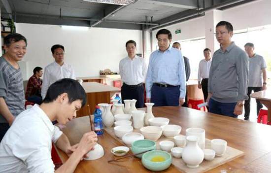 11月15日,市委書(shū)記、市人大常委會(huì)主任黃海昆深入北流市陶瓷小鎮(zhèn)調(diào)研。(記者 陳東 攝)
