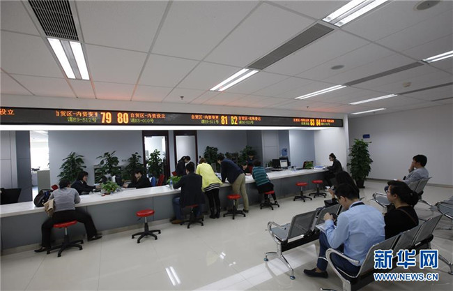 這是設(shè)在上海張江高科技園區(qū)管理委員會(huì)大樓內(nèi)的中國(guó)(上海)自由貿(mào)易試驗(yàn)區(qū)張江行政服務(wù)中心辦事大廳一角(2015年3月31日攝)。新華社記者方喆攝