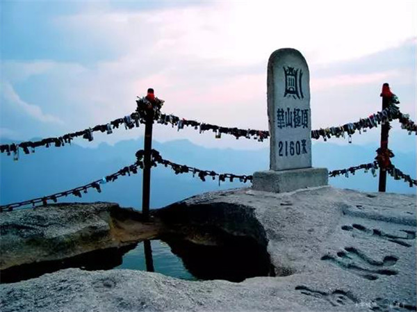 華山是愛情山,“洞房”一詞就源于華山西峰。相傳春秋時期在華山修行的吹簫人簫史和秦穆公的女兒弄玉就是在華山西峰相識相愛,由于山上沒有房屋,就在崖壁上鑿洞成婚,“洞房”一詞由此誕生。 如今來愛情山的游客都有了一個約定俗成的習慣,“進山先拜廟,相愛神知道”,“一把連心鎖,鎖定你和我”。相愛的情侶,不分年齡,不分國籍,不分信仰,來到山上都要進香上鎖,讓華山見證彼此的真心與愛意,祈求幸福美滿,人生甜蜜。