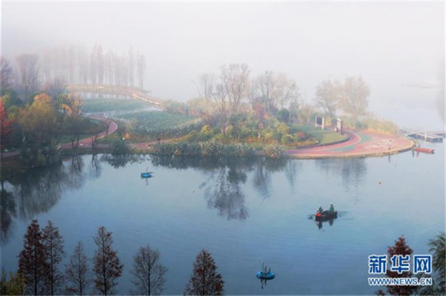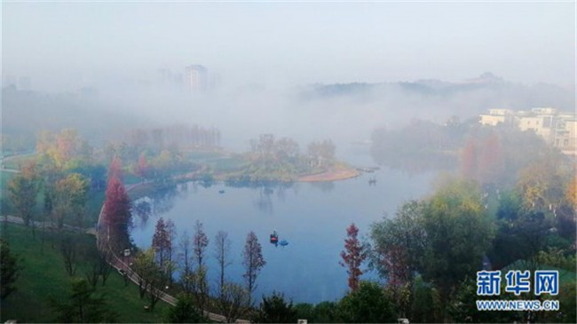 這是11月26日在貴陽(yáng)市觀山湖區(qū)閱山湖公園內(nèi)拍攝的霧景。新華社記者 劉續(xù) 攝