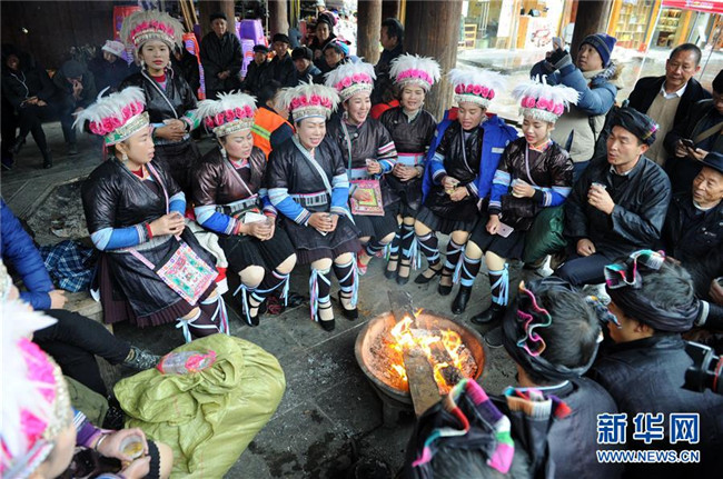 12月9日,在貴州省黎平縣中潮鎮(zhèn)佳所侗寨,侗族同胞盛裝參加侗年活動(dòng)?!⌒氯A社發(fā)(楊文斌 攝)