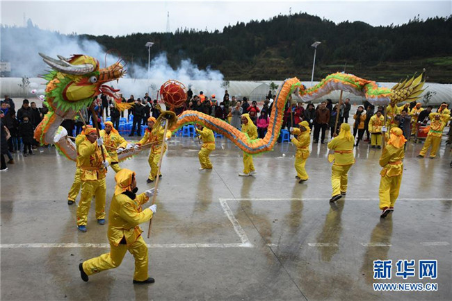 12月9日,貴州省黎平縣中潮鎮(zhèn)佳所侗寨的村民在侗年活動(dòng)中舞龍?!⌒氯A社發(fā)(楊文斌 攝)