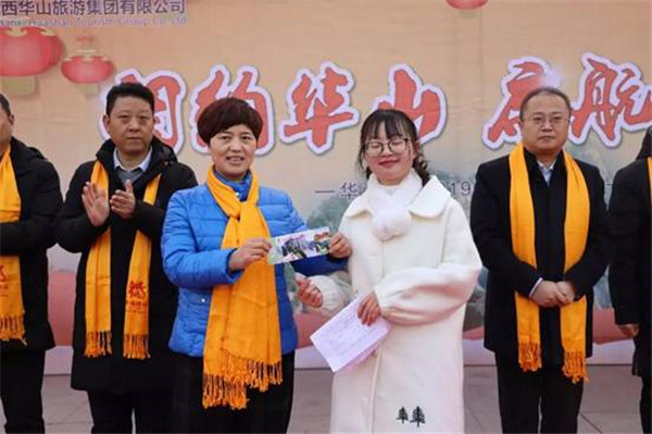 華山景區(qū)黨工委委員 、華山管委會(huì)副主任雷靖為幸運(yùn)游客代表送上華山門(mén)票