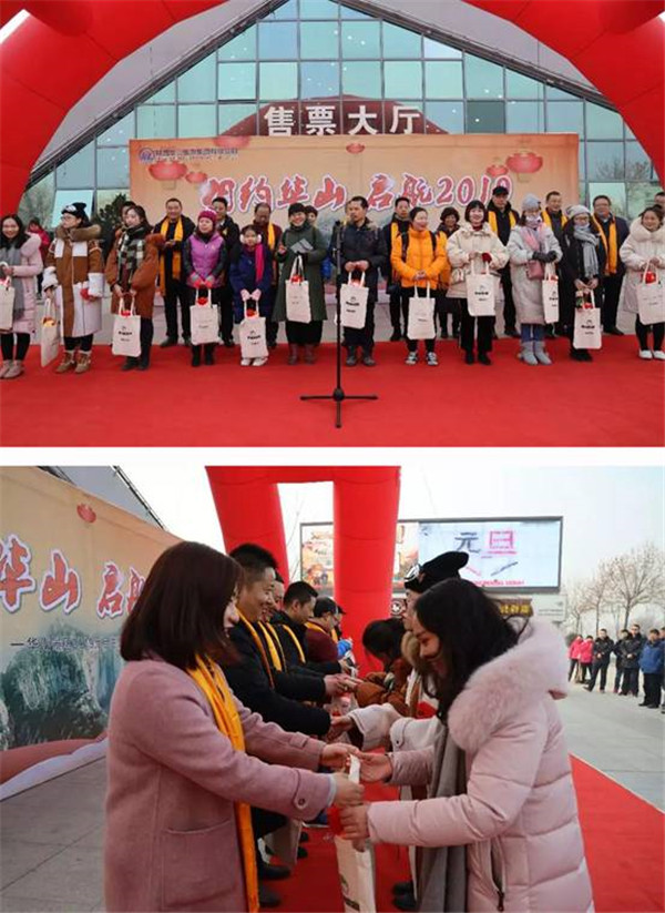 元旦當(dāng)天上午,伴隨著景區(qū)工作人員的熱情文藝表演,“相約華山 啟航2019”迎新年啟動(dòng)儀式正式拉開(kāi)帷幕,華山風(fēng)景名勝區(qū)管理委員會(huì)黨工委委員張永江代表華山全體員工向廣大游客朋友們致新年賀詞,恭祝全國(guó)游客新年快樂(lè)。他表示,2018年是華山的拼搏年,華山旅游人數(shù)首次突破300萬(wàn)人次大關(guān),隨著大華山旅游目的地的不斷建設(shè)與完善,休閑度假、康體養(yǎng)生、戶外拓展、自駕露營(yíng)、溫泉療養(yǎng)等各項(xiàng)旅游項(xiàng)目都受到中外游客的青睞。2019年,華山景區(qū)將揚(yáng)帆起航,再創(chuàng)輝煌。