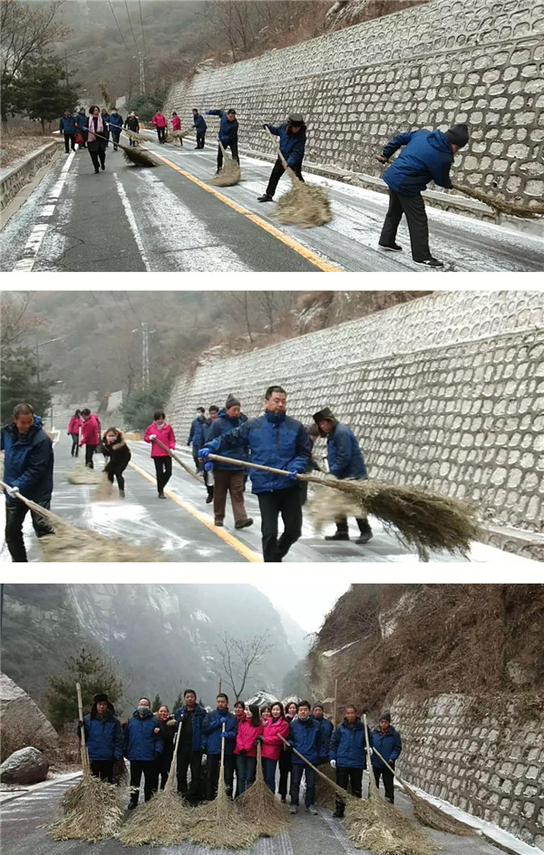 盤山公路上是進山交通車輛的必經(jīng)之地,清掃工作任務較重,但華山人熱情飽滿,齊心協(xié)力,全力以赴,確保道路的通暢。