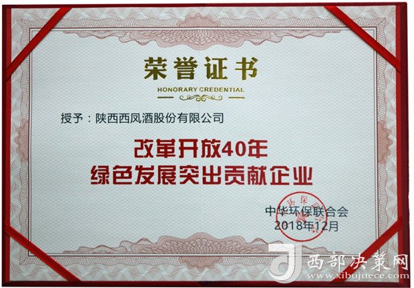 近日,在中華環(huán)保聯(lián)合會(huì)組織的“紀(jì)念改革開(kāi)放40年中國(guó)企業(yè)綠色發(fā)展成就主題活動(dòng)”中,陜西西鳳股份公司因在綠色發(fā)展、生態(tài)文明、環(huán)境保護(hù)、節(jié)能減排等方面的突出成績(jī),榮獲改革開(kāi)放40年“綠色發(fā)展突出貢獻(xiàn)企業(yè)”殊榮。標(biāo)志著該公司在實(shí)施綠色發(fā)展戰(zhàn)略、生產(chǎn)綠色產(chǎn)品、使用綠色技術(shù)等方面的卓越成果得到國(guó)家環(huán)保部門的充分肯定,達(dá)到了企業(yè)經(jīng)濟(jì)效益、社會(huì)效益、環(huán)境保護(hù)效益的有機(jī)統(tǒng)一。