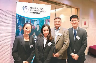 圖為張婧怡(左二)參加墨爾本大學(xué)小微金融協(xié)會(huì)的案例分析大賽時(shí)與隊(duì)友們的合影。