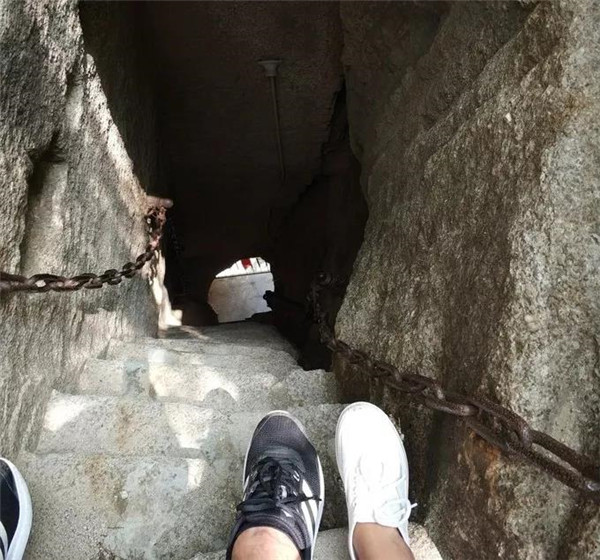 古書記載:在華山大上方有一天然石洞,形似豎井,壁如刀削,僅容一人上下。洞邊有一木梯,石壁上刻有“洞在高山”四個(gè)大字。出洞四望,豁然開(kāi)朗,峰巒疊翠,林木蒼郁,奇花競(jìng)秀,流泉淙淙,飛鳥(niǎo)時(shí)鳴,給人一種“無(wú)限風(fēng)光在險(xiǎn)峰”之感。因?yàn)榇笊戏降缆菲D險(xiǎn),不是游客必經(jīng)之地,但古書記載的景點(diǎn)就在那里。