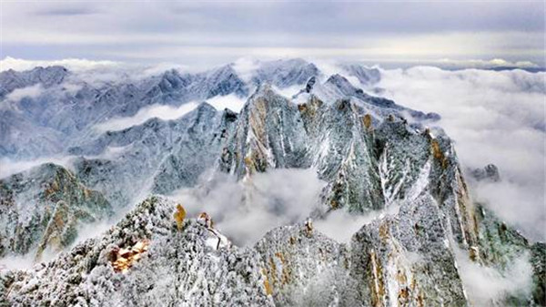 一場大雪將西岳華山變成白雪皚皚的世界,白雪與蒼翠的華山奇松、靈動(dòng)的云海交相輝映,如夢如幻;滿山遍野玉樹瓊花,樹枝上通體的霧凇晶瑩剔透,繪就冬日畫境,美不勝收,游人如置身人間仙境。