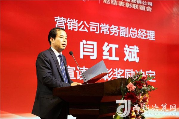西鳳酒營(yíng)銷公司常務(wù)副總經(jīng)理閆紅斌宣讀《關(guān)于對(duì)2018年度先進(jìn)單位、先進(jìn)個(gè)人給予表彰獎(jiǎng)勵(lì)的決定》
