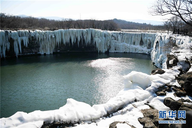 去冬今春以來,黑龍江省鏡泊湖的吊水樓冰瀑景色壯觀,吸引許多游人前來觀賞。 新華社記者 王建威 攝