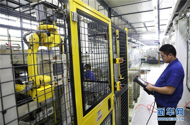 在位于重慶永川鳳凰湖工業(yè)園的重慶西源凸輪軸有限公司,工作人員在調(diào)試自動化生產(chǎn)設(shè)備(2018年7月31日攝)。新華社記者王全超攝
