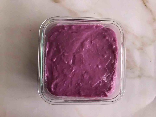 11.將做好的紫薯泥倒入碗中,抹平,入冰箱冷藏2小時