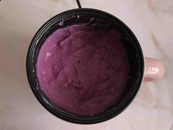 4.將剩余牛奶倒入紫薯泥中拌勻