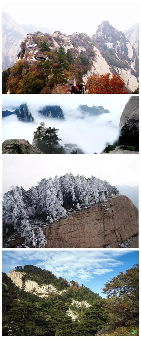 春之翠綠,勃勃生機。夏之云海,如夢如幻。秋之絢爛,滿山紅葉。冬之潔白,銀裝素裹。 【四季華山】
