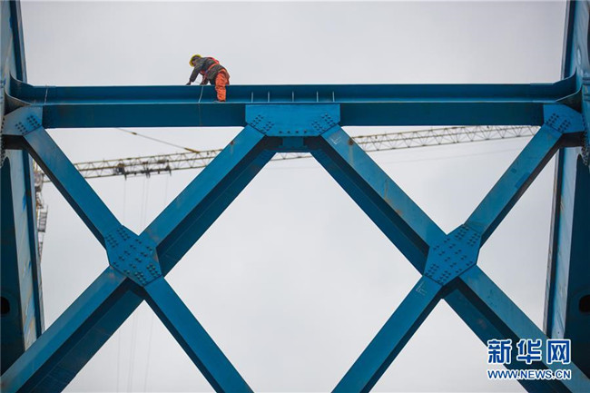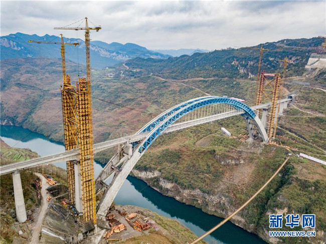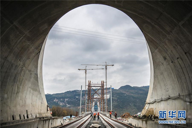 目前,成貴高鐵控制性工程鴨池河特大橋建設已進入最后沖刺階段,大橋主體工程完工,鋼軌鋪設已經完成。預計該橋將于年內竣工。 新華社記者 劉續(xù) 攝