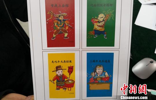 在眾多的漫畫中,有一組設(shè)計水滸英雄吃面的造型吸引眼球。漫畫中的英雄人物花樣“秀”吃面,配著“雪夜上面館”“吃面倒拔垂楊柳”“三碗牛大不過崗”等文字。