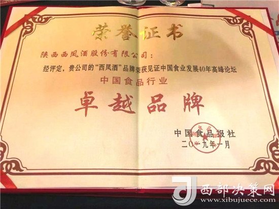 西鳳酒獲得 “中國食品行業(yè)卓越品牌”光榮稱號(hào)