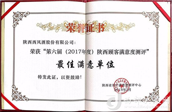 西鳳股份公司獲得“第六屆陜西顧客滿意度測評” 最佳滿意單位光榮稱號(hào)