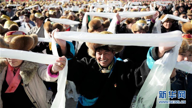 3月28日,慶祝西藏民主改革60周年大會在拉薩布達(dá)拉宮廣場舉行。新華社記者 李鑫 攝
