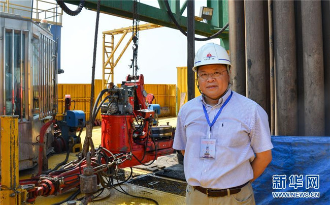 黃大年在松遼盆地大陸科學(xué)鉆探2號井現(xiàn)場(2014年8月8日攝)。新華社發(fā)