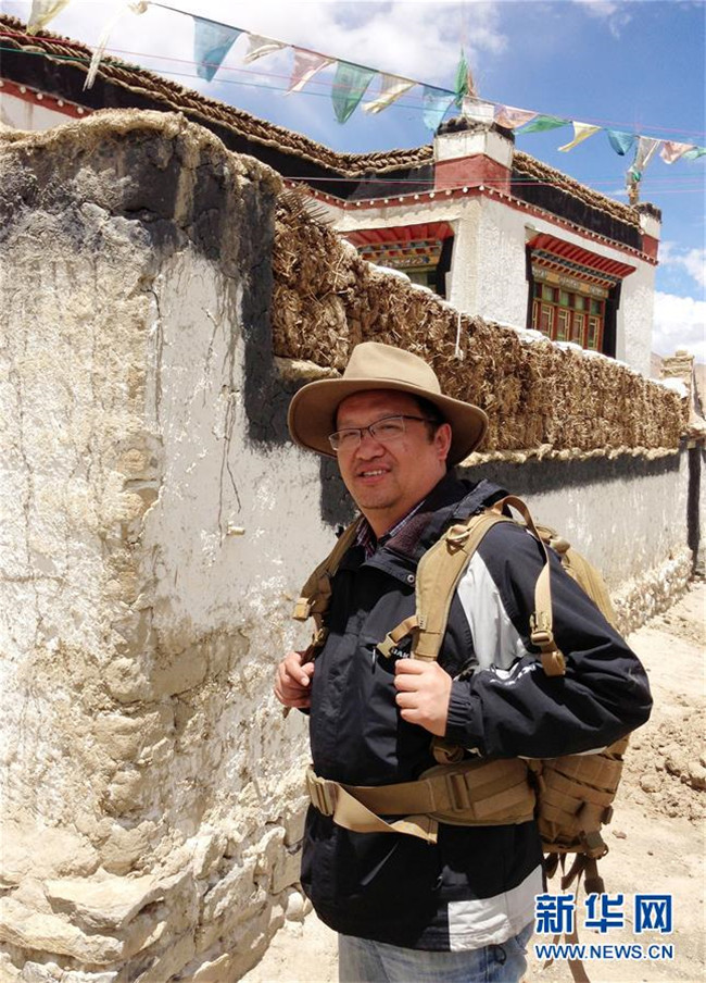 復(fù)旦大學(xué)教授鐘揚在西藏日喀則進行植物采樣期間留影(2013年8月4日攝)。新華社發(fā)(馮艾 攝)
