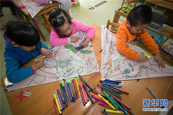 4月1日,門頭溝區(qū)妙峰山民族學(xué)校附屬幼兒園小朋友們?cè)诋嬶L(fēng)箏。新華社發(fā)(侯繼慶 攝)