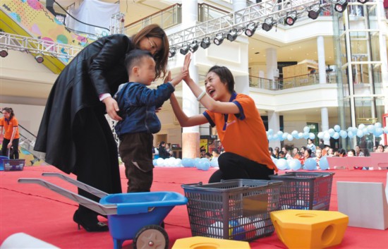 4月2日,早教老師與自閉癥患兒家庭協(xié)作完成互動(dòng)游戲。當(dāng)日是第十二個(gè)“世界自閉癥關(guān)注日”,圍繞今年的主題“消除誤區(qū),倡導(dǎo)全納”,銀川市文明辦、殘聯(lián)等單位聯(lián)合開展“藍(lán)色行動(dòng),愛不孤單”志愿服務(wù),通過宣講、捐贈(zèng)、游戲等方式,倡導(dǎo)人們尊重、愛護(hù)自閉癥患兒,助其融入社會大家庭?!∮浾?白茹 攝