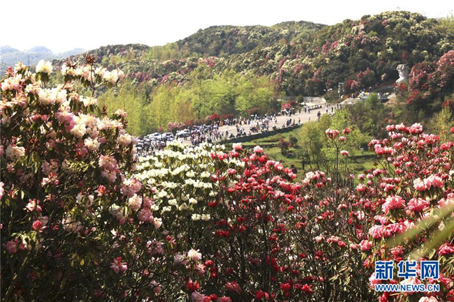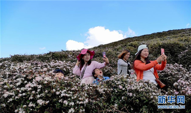 4月7日,游客在貴州省畢節(jié)市百里杜鵑金坡景區(qū)游覽。清明時節(jié),人們外出旅游,踏青賞花,感受春天的美好。 新華社發(fā)(韓賢普 攝)