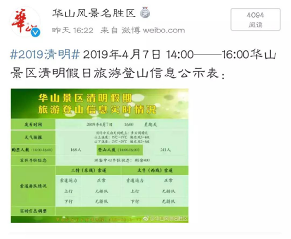 2019-04-09 14:23:07 來源:華山景區(qū)