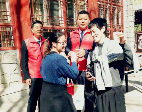來自景區(qū)一線工作崗位的30名“紅馬甲”志愿者首次參與到度節(jié)執(zhí)勤工作中,志愿者們在關(guān)鍵區(qū)域向游客提供游覽咨詢、道路指引、免費(fèi)熱水供應(yīng)、免費(fèi)醫(yī)療救護(hù)等服務(wù)。