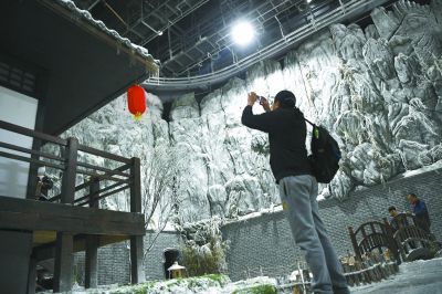 除了眾多親子游客,不少年輕人也特地前來。中影基地6號棚的江南水鄉(xiāng)拍攝小景跟前,聚集了許多年輕人圍觀一對青年體驗拍攝《大話西游》中的經(jīng)典場景。全副武裝扮演至尊寶的是來自北京吉利學(xué)院的學(xué)生張江。“曾經(jīng),有一份真誠的愛情放在我面前,我沒有珍惜,等到我失去的時候才后悔莫及……”當背出了至尊寶的經(jīng)典臺詞時,張江依然覺得“很尬”,難以入戲。導(dǎo)演趕緊上來給他說戲,“這時候劍距離你的喉嚨只有0.01公分,你要仰起頭……”這當口,飾演紫霞仙子的女同學(xué)已經(jīng)拿不住劍,手腕松了下來。一個小時過去了,這一條還是沒能過,只好休息一會兒。“人生第一次嘛,體驗體驗。”張江說。