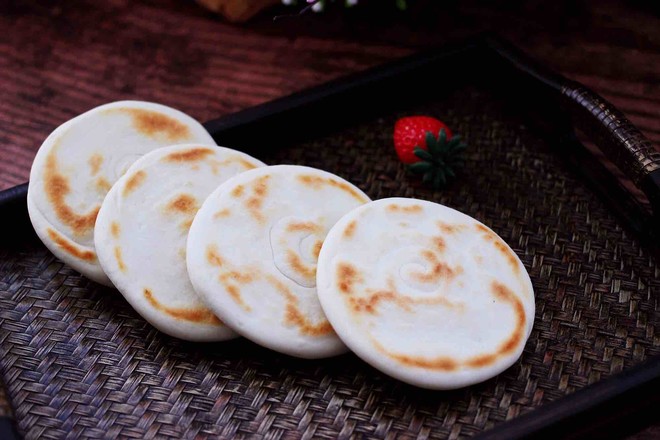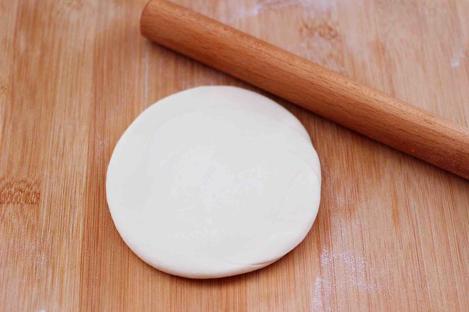 14.平底鍋燒熱后,把搟好的面餅放入鍋中。