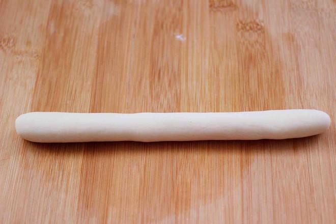 11.取一份面團(tuán)揉勻后,先搓成長條。