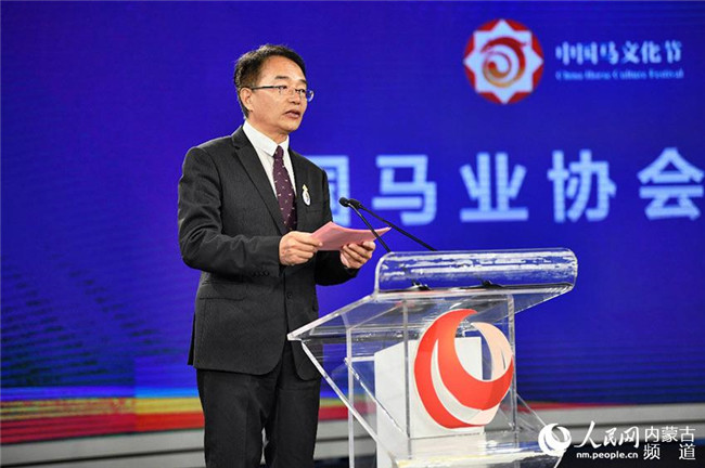 內(nèi)蒙古新華發(fā)行集團董事長冀學(xué)博發(fā)布第二屆中國馬文化節(jié)暨首屆內(nèi)蒙古國際馬文化博覽會賽馬賽事活動。