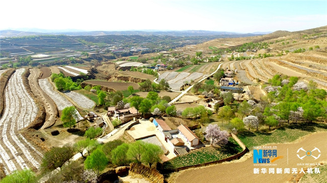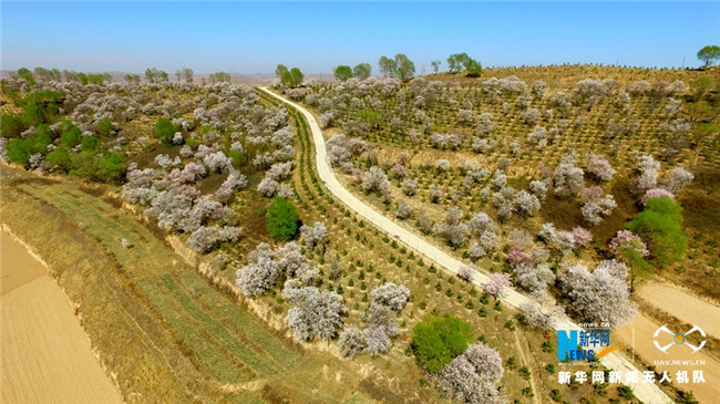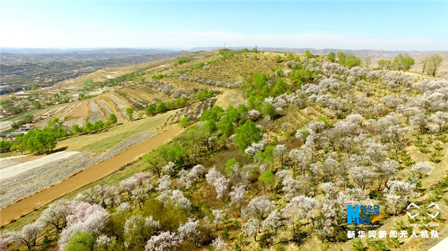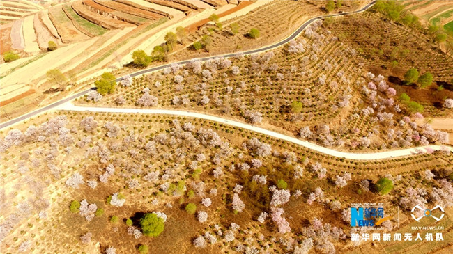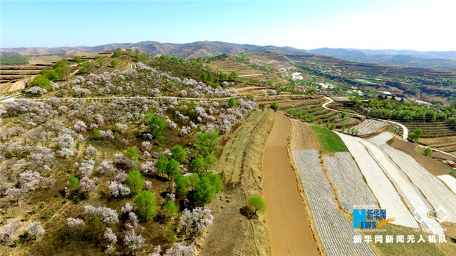 原標題:【飛“閱”中國】甘肅定西:黃土塬上別樣景 千樹杏花笑春風