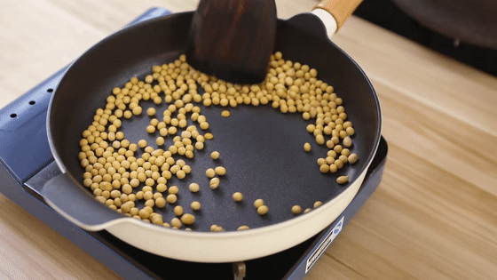 2.開小火炒20分鐘左右至豆香四溢。將炒好的黃豆倒入碗中自然冷卻。(炒過的黃豆出鍋時(shí),小心燙手。)