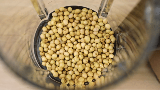 3.冷卻后的黃豆加入20克白砂糖,倒入破壁機(jī)中。