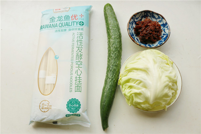 主料:金龍魚活性發(fā)酵空心掛面100克 圓白菜50克 黃瓜1根