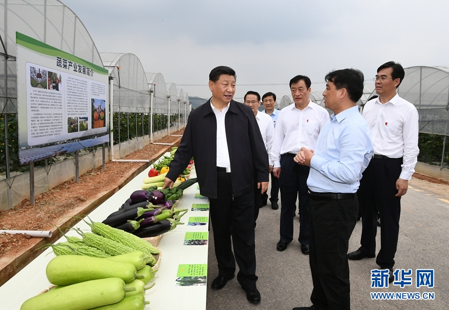 5月20日至22日,中共中央總書記、國家主席、中央軍委主席習(xí)近平在江西考察,主持召開推動中部地區(qū)崛起工作座談會并發(fā)表重要講話。這是習(xí)近平在贛州市于都縣梓山富硒蔬菜產(chǎn)業(yè)園考察調(diào)研。 新華社記者 謝環(huán)馳 攝