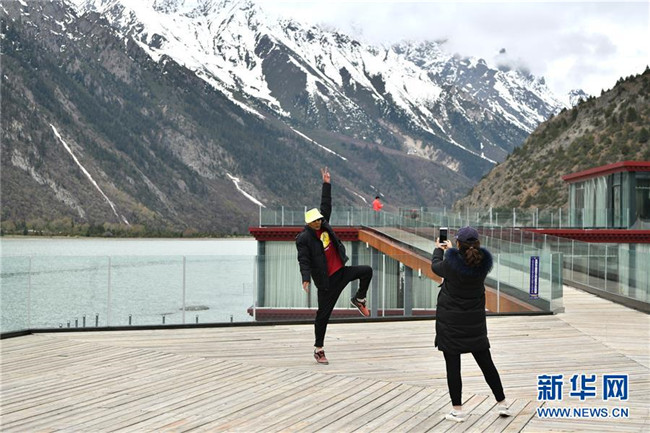 5月24日,游客在營(yíng)地的觀景臺(tái)上拍照留念。